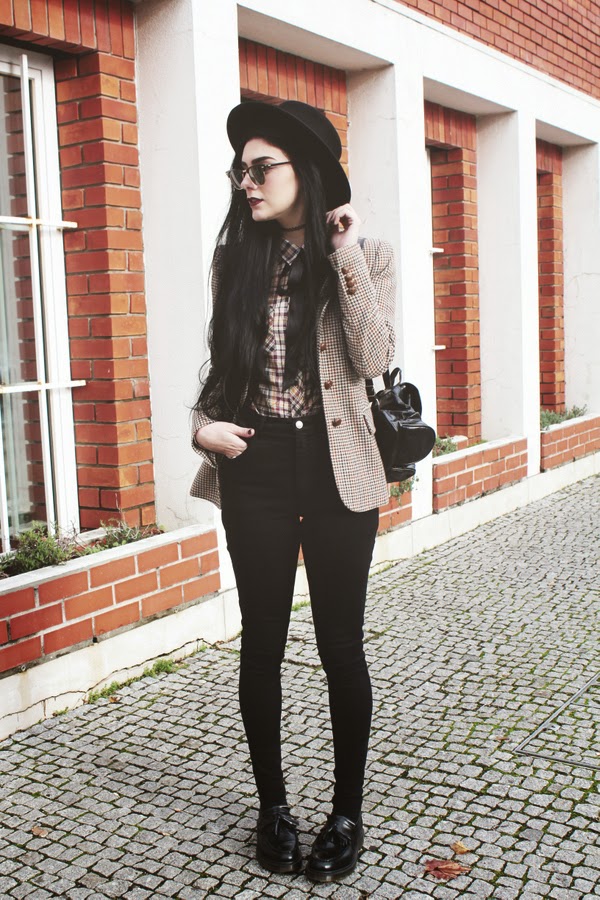 Love to mix different yet similar plaids, something of it reminds me of Andre 3000 i always loved his style, since i had 13 years old. In this case the shape of the plaids are completely different, the shirt has a "normal" plaid and it's from Levi's i have it forever really, the jacket has a pied de poule kind of plaid but the autumn colors of both kinda match. To make this both pieces the key of the look everything else is black, the jeans, the hat, the shoes and the ribbon. The only brown thing i added was this amazing watch from August brand, it's so simple, white with pink gold and a brown armlet, i'm totally in love with it. The clubmaster Ray-bans are from my boyfriend. Hope you like this look.