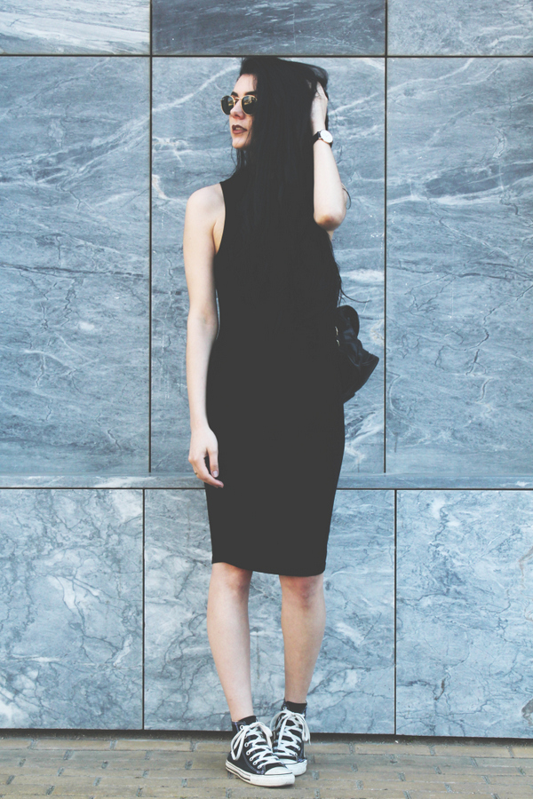 Just another casual look waring a body coon stretchy dress with Converse All star. This time all black. I can't fell more comfortable than this! Love to walk around and to go to classes all day in this, is just so practical! I take so many photos in this place, but it is just so close to my house and i love marble walls, i've been trying to find other marble walls but unsuccessfully! The dress is from Young Hungry Free and you can find it here. Well hope you like this look i'm hitting the Autocad again, have a endless assignment to do :(