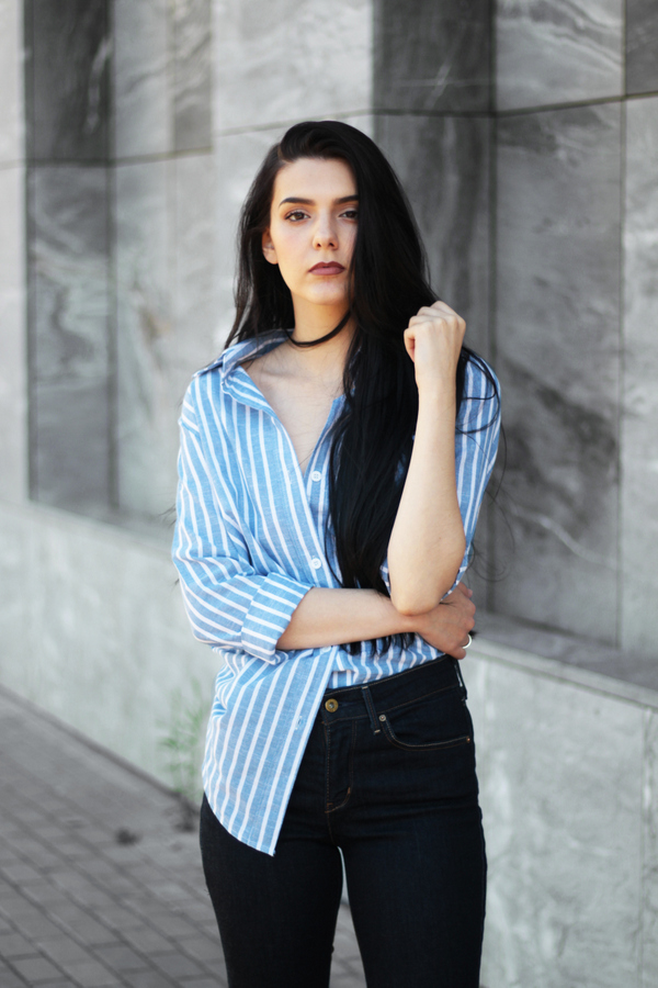 Here i'm wearing a SheIn shirt, blue ones are my complete fav because they bring a boyish vibe to the look. You can find the shirt here.