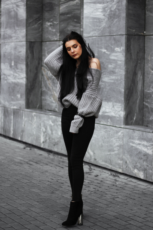 In winter i always struggle when i want to go out, not a night out, but a casual night with your friends in your regular bar, because first of all i don't want to be over dressed and at the same time i don't want to wear boring all covered up pieces, i think much more people struggles with that. And that's why i really like to have warm but cute sweaters, a really chunky off the shoulder sweater is the perfect piece for that occasion, i can still be really warm and comfy and if i wear a oversized coat over that i stay even more warm, and at the same time it's put together and cute enough for going out.