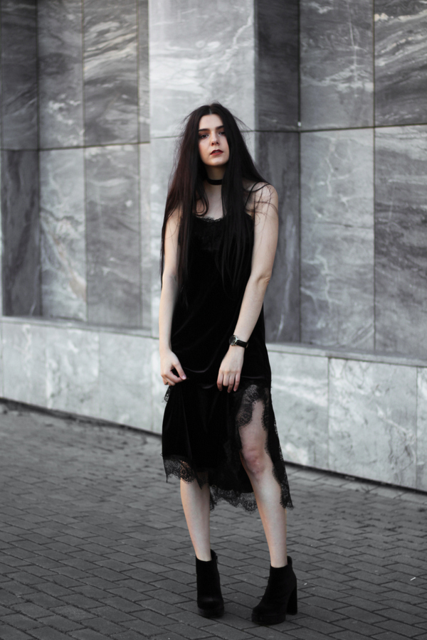 This one is without a doubt my favorite one, for so many reasons. First of all i absolutely love velvet, and this one being black makes it the perfect color and material dress. Then the lace inserts are just amazing, make it look so romantic, and bring that lingerie vibe so in right now.