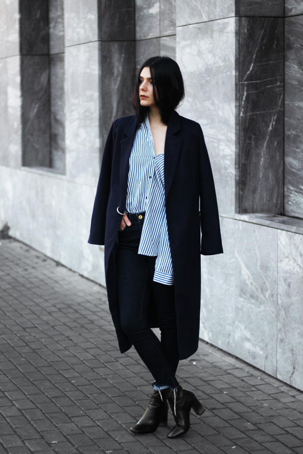 Been really into the masculine vibes, from shirts to straight coats and to masculine colors like navy or dark grey.