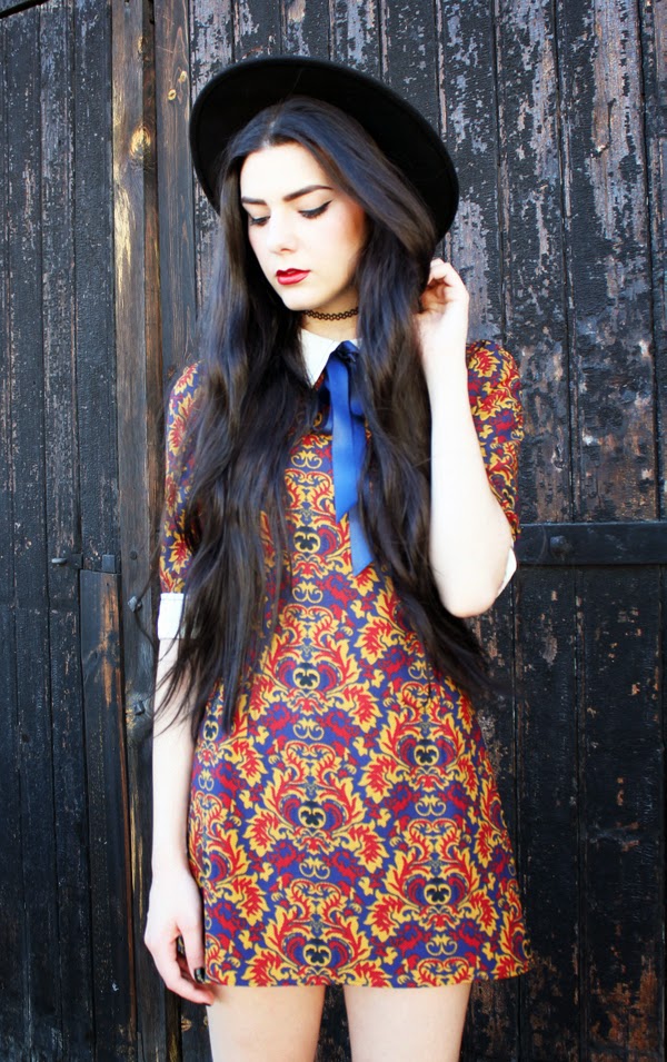 Hi! It's been a while since my last post, well i'm just so lazy in the summer, but i have to show you this amazing dress from Miss Patina, check the site here, Miss Patina is a vintage inspired brand and they have gorgeous things. Their items are so amazing, their cloths are much more than pretty, the quality is amazing, the fabrics are beautiful, the details are gorgeous this dress have the most gorgeous tiny little buttons in the sleeves (i'm sorry but i forgot to take pics of it) even their labels are unique. You can buy the dress here, it looks much brighter in day light as you can see in my photos, the colors are beautifu: red, blue and yellow with white collar. I made mine a bit shorter. Hope you like this look.