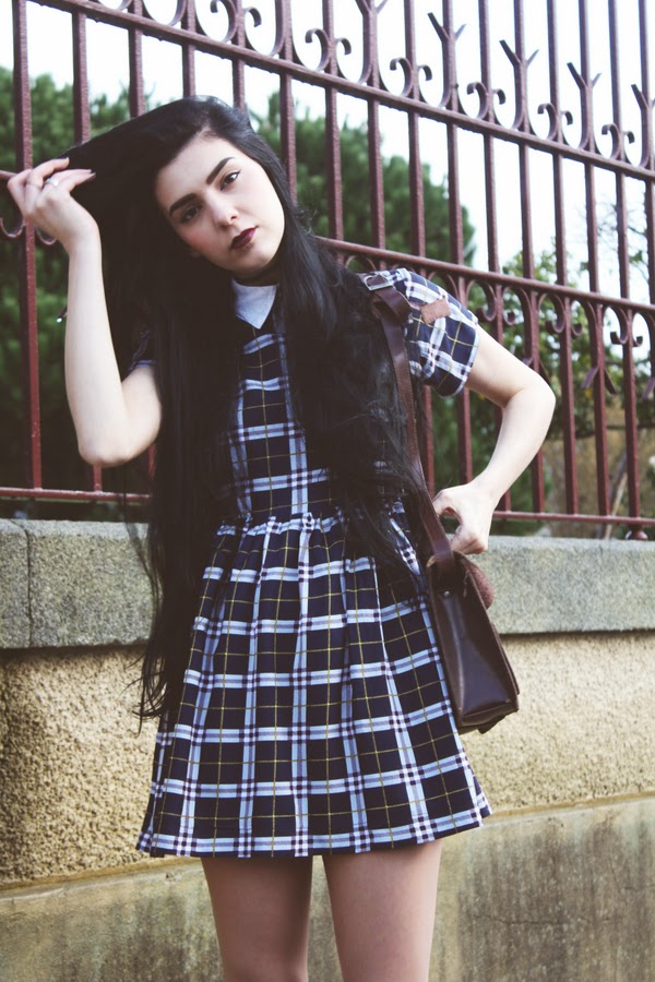 Loving the color palet of this dress: navy, mustard yellow and merlot/burgundy plaid, it chalenged me to drop the black a little bit and to mix different colors, the only black i'm wearing is in the shoes (can't believe it), i ended up to love the mix of burgundy and mustard in my sock and beanie, want to mix this colors more they work so well together and the navy look amazing with both. You know how much i love Motel Rocks and this dress it's one of the reasons why! Plaid, babydoll cut with a white collar couldn't be more me! Will wear it so much winter time or summer time it doesn't matter because it looks so good with chunky knits like a cardigan or a jumper. You can check it out and buy it here. Hope you like this look.