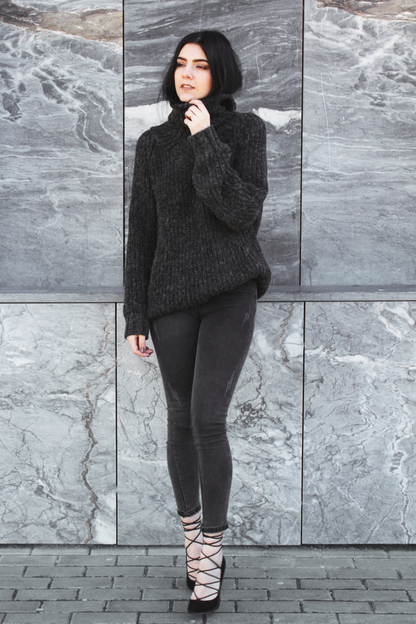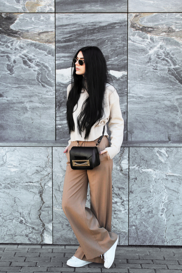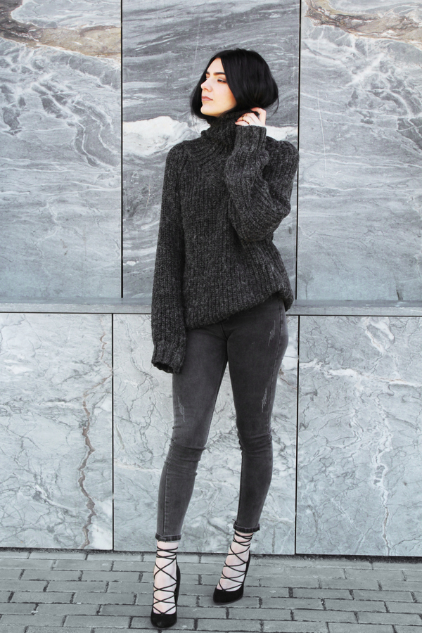 I really like lace up top and i really like ribbed knit, this cropped sweater is all of that and more, it looks almost black in the photos but it is olive green, a very dark shade of course. The lace up sweater is from CelebLook and you can find it here.